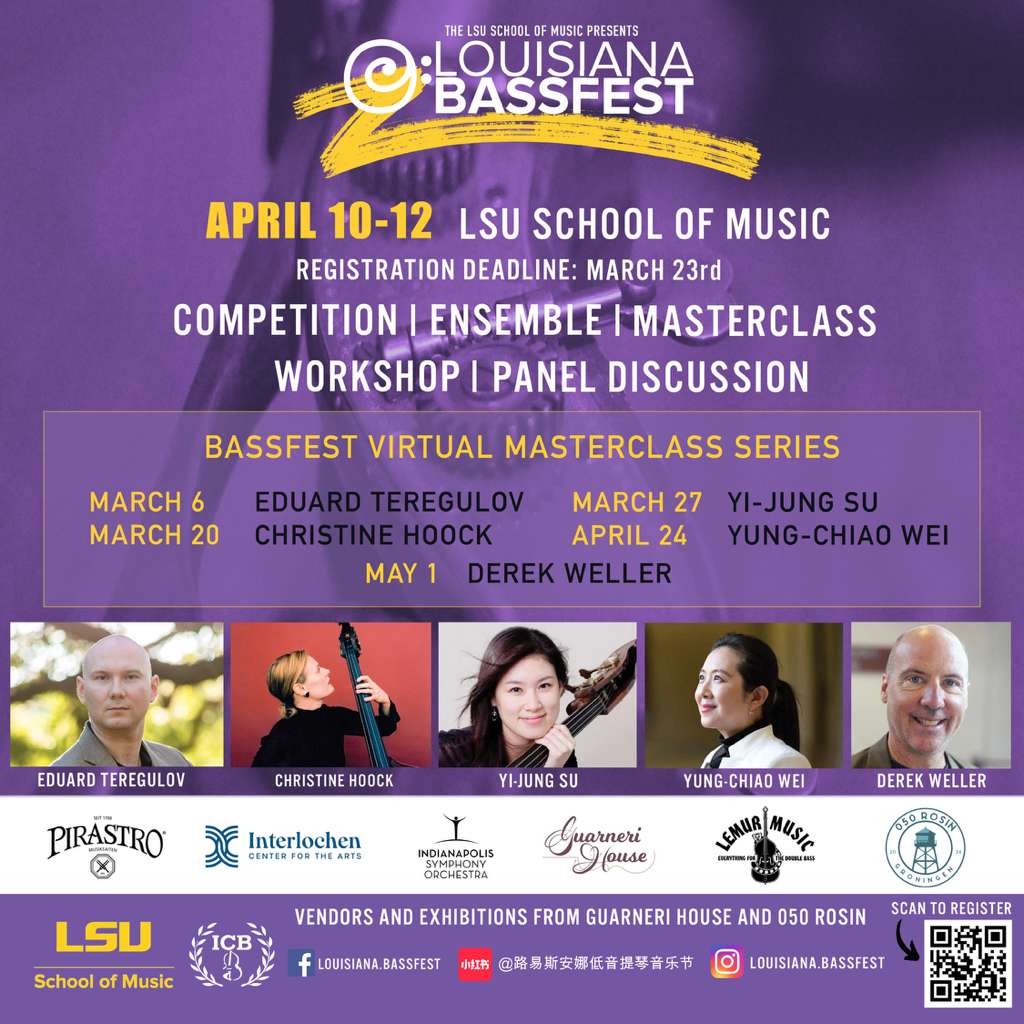 Louisiana Bass Festival & Masterclass Series Leave a Comment / Bass events / By tbarbe@gmail.com / March 6, 2026 https://www.lsu.edu/cmda/music/events/bass-fest/index.php https://www.lsu.edu/cmda/music/events/bass-fest/index.php